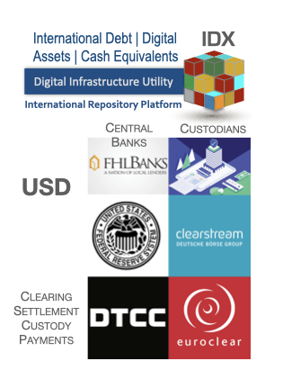 IDX is designed to map composite holdings for USD to globally recognised repositories, custody, safekeeping and trust arrangements, as well as fiscal agent services, using technologies which have been in operations for more than 30+ years, supporting AAA rated transactional activity.